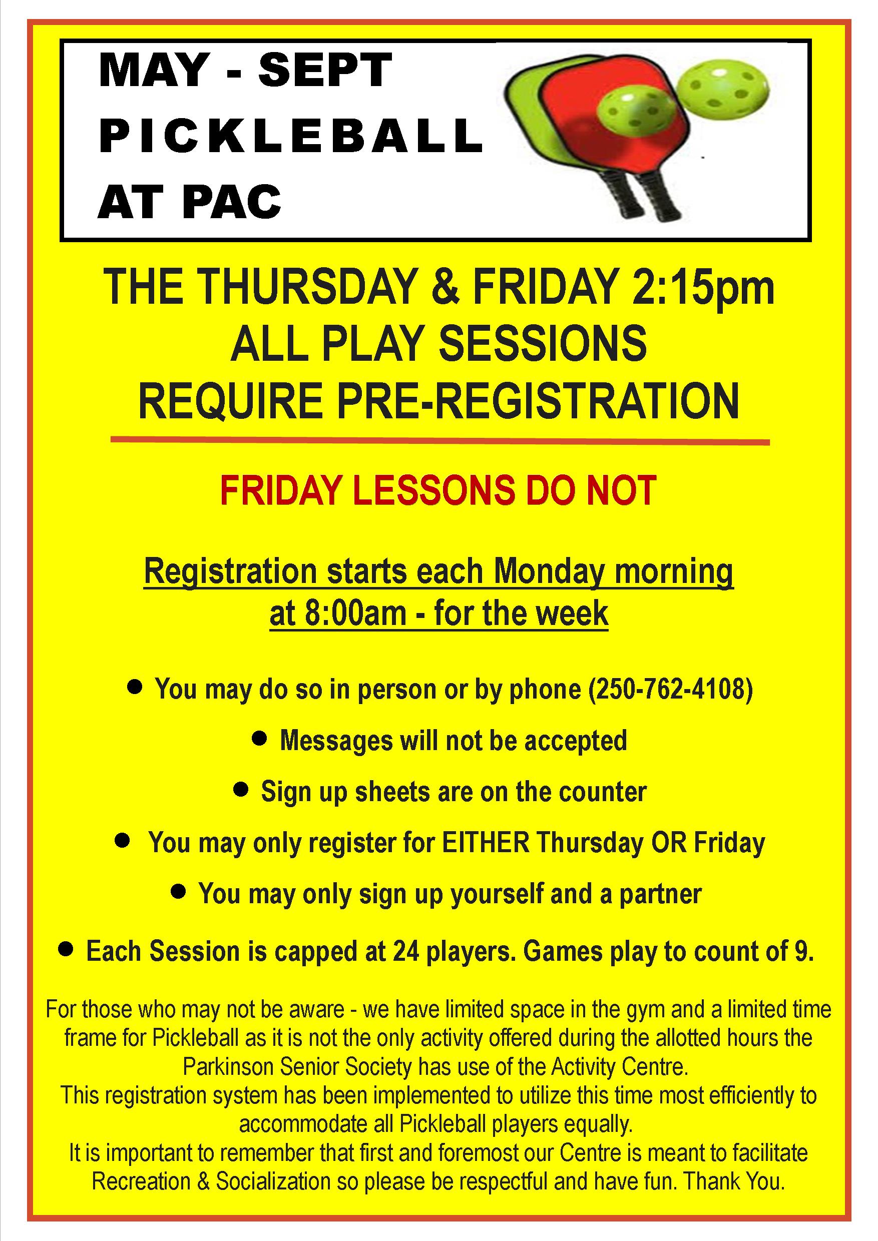 EXCEPT THURSDAY & FRIDAY 2:15pm PICKLEBALL