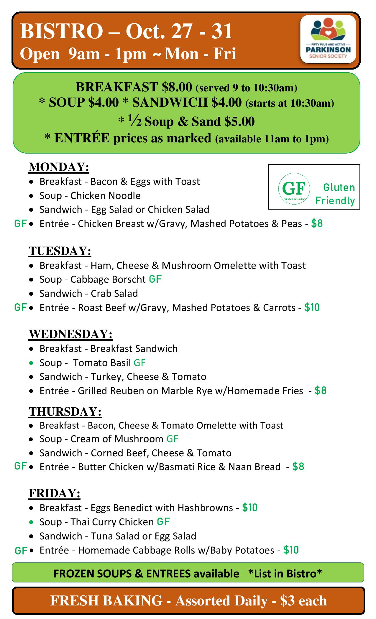 SCROLL DOWN TO VIEW BISTRO MENU FOR THE WEEK
