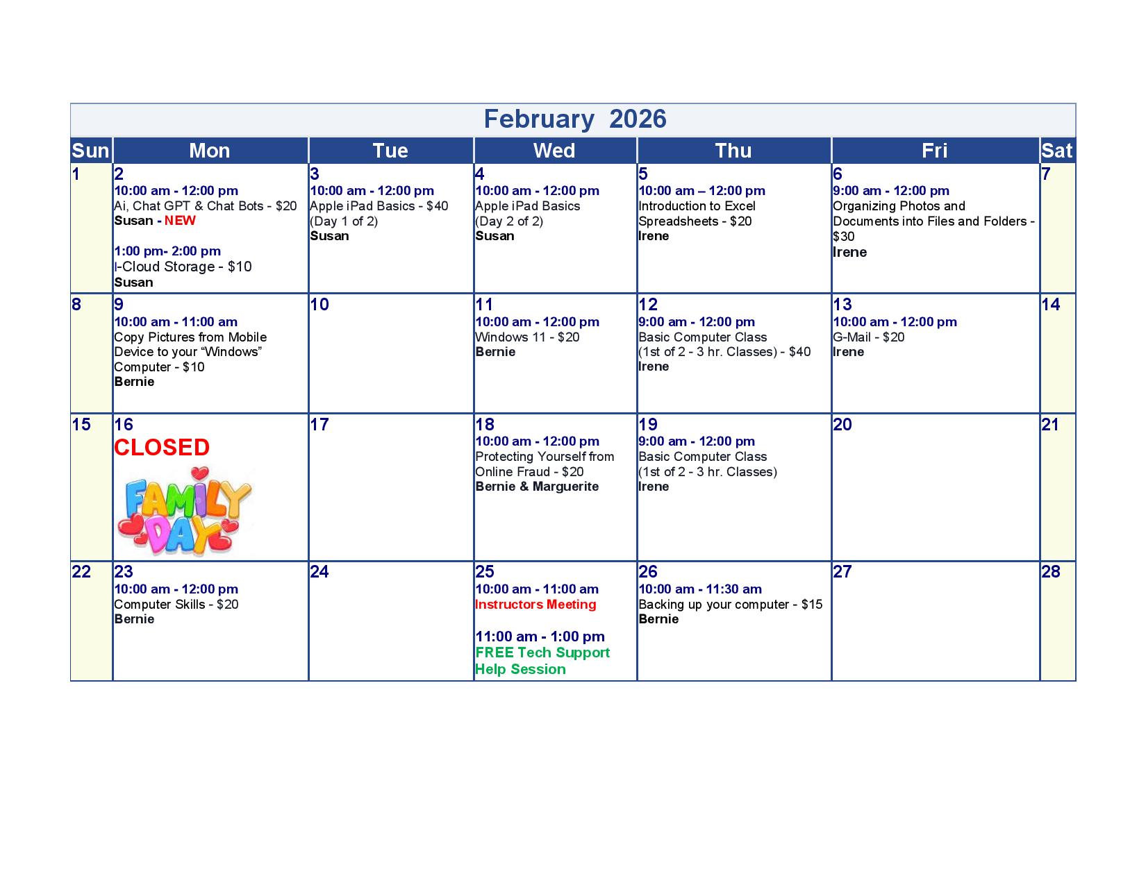 SCROLL DOWN TO SEE FUTURE MONTHS